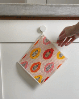 I was delighted 😁 to find that my reusable Papaya will hang nicely next I my sink without the stink! I love that it is easy to wash and wet, and simple to throw into a dishwasher load for an extra clean. It easily wipes up messes without requiring gobs and sheets of paper towels, as promised! I already gave some to my sister and a friend and they were thrilled about not wasting and spending more on paper towels. I love mine and happily share the good news that less is more!!!